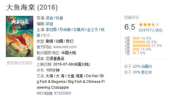 近年来国产动画电影的制作费用也是水涨船高。然而,制作精良画面美轮美奂的《大鱼海棠》,最终票房远未达到预期。这样的表现与它主题表达的苍白无力大有关系。一部优秀的动画电影,既要拼制作,更要讲情怀。