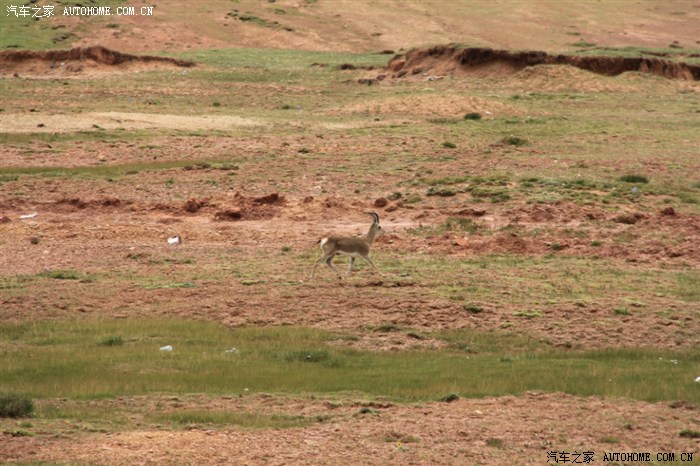 居然在路边看到了传说中的藏羚羊!它对人和车都很警觉,发现我们在关注它,很快就奔跑得看不见影子了!