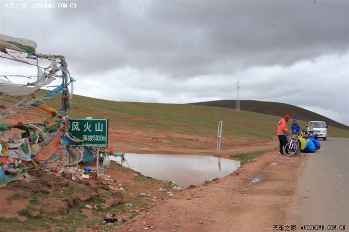 到达风火山垭口,风很大,经幡被吹得呼啦啦响。此处海拔5010米,我们没有高反症状,也没有任何不适,心中更加对今后的行程充满信心。一群骑行的驴友在此休息!