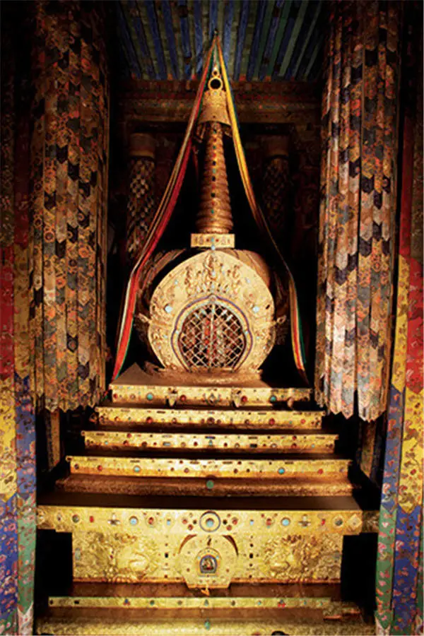 作为西藏历史上最伟大的法王,五世的灵塔中除了其肉身,还供奉着释迦牟尼的手指舍利和藏传佛教格鲁派的创始人宗喀巴大师的牙舍利。