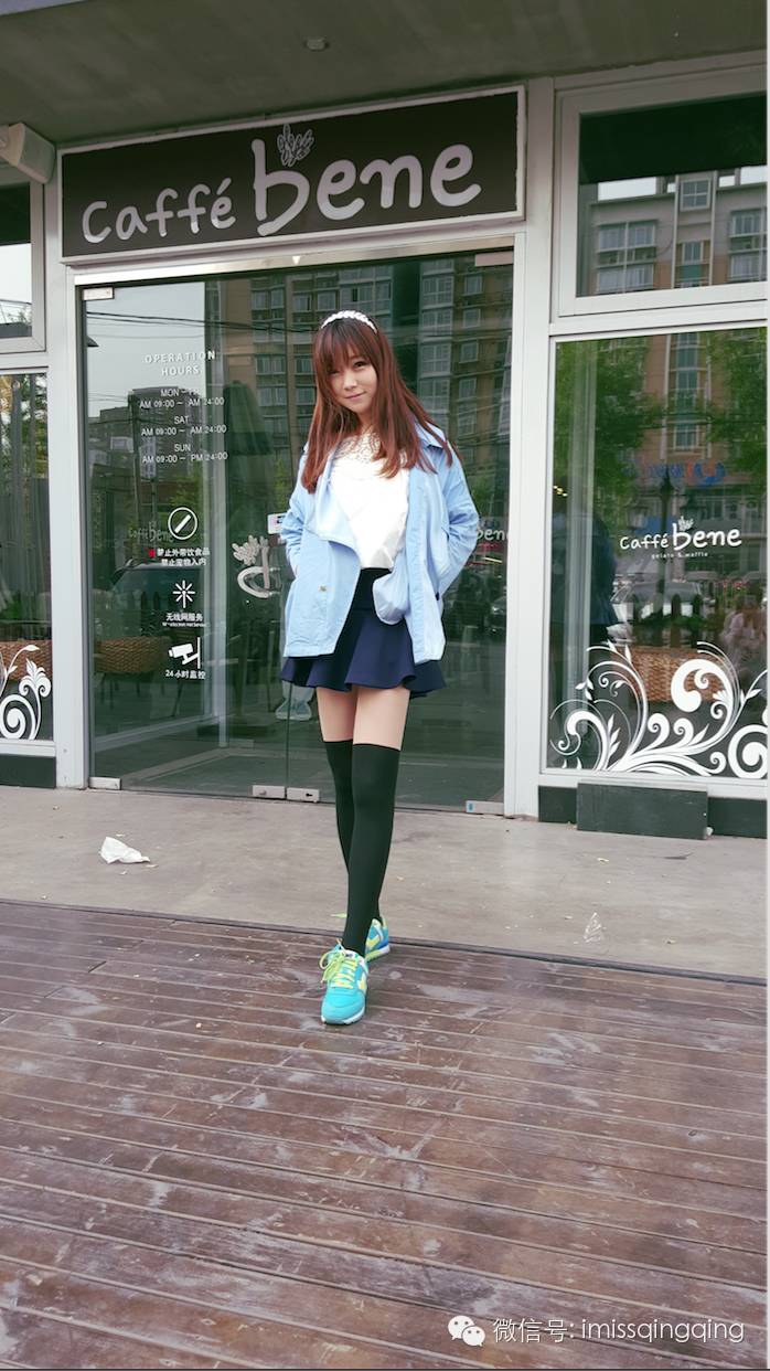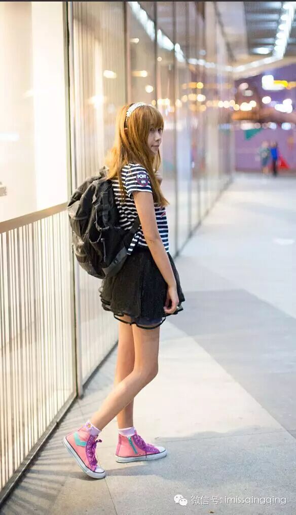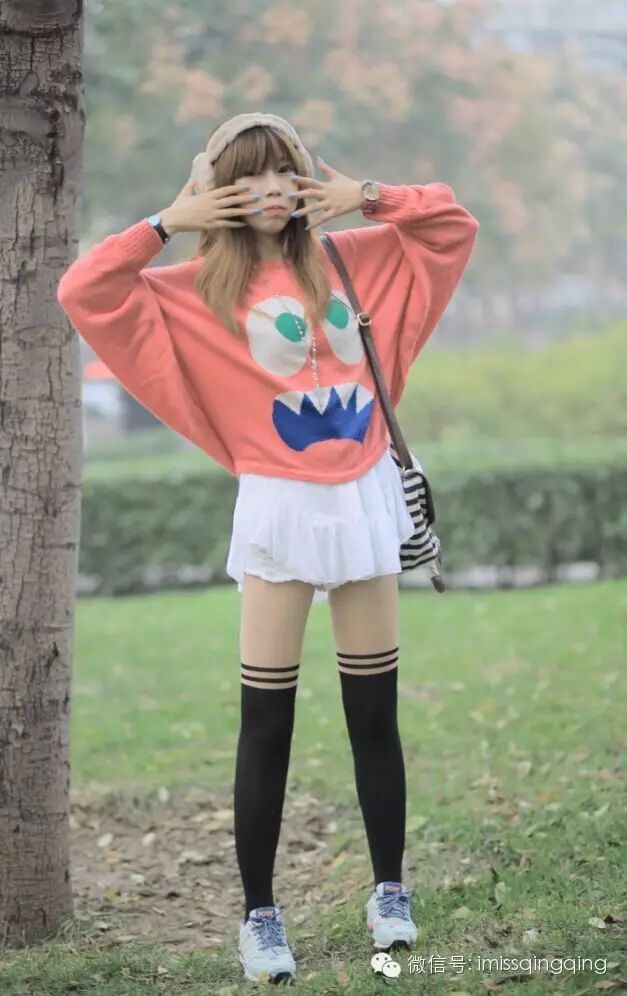黑色及膝袜能够从视线上拉长小腿,穿上球鞋再搭配短裙,青春这条路感觉还能再走二十年😄!遵循下紧上松的原则,上面尽量选择宽松的卫衣或者T恤,能给人一种娇小玲珑的感觉。