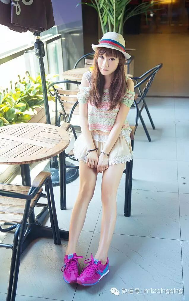 除了运动风,光腿穿球鞋再配上仙仙的雪纺短裙,瞬间切换成甜美风。头上可以带一些可爱的发卡或者藤编的帽子,度假风也顺便搞定了。脚踝细的妹子还可以考虑搭配一双中筒袜,妥妥滴日系。
