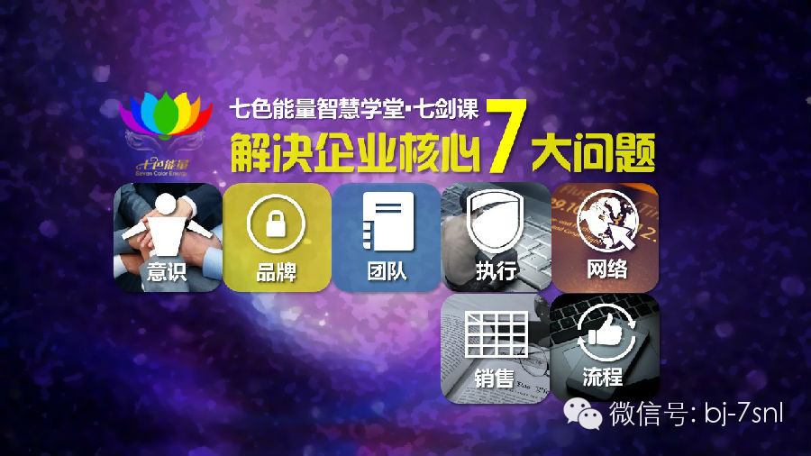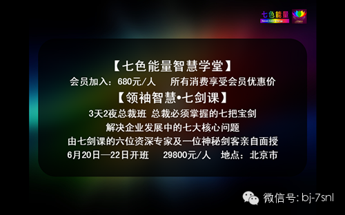 七色能量智慧学堂•七剑课主要打造企业核心智囊团,为企业发展解决七大核心问题