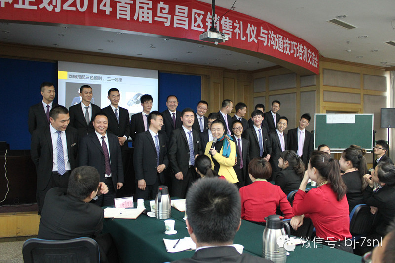 男士学员站成一排和中国玲子老师共同销售礼仪细节的重要性,男士穿西装也是有技术含量的哦,这些你全部都知道吗?