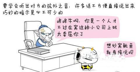 4、要学会听出对方的弦外之音,许多话不方便直接说出来,巧妙的暗示是必不可少的。这做起来或许不太容易,但不得不去学着做。