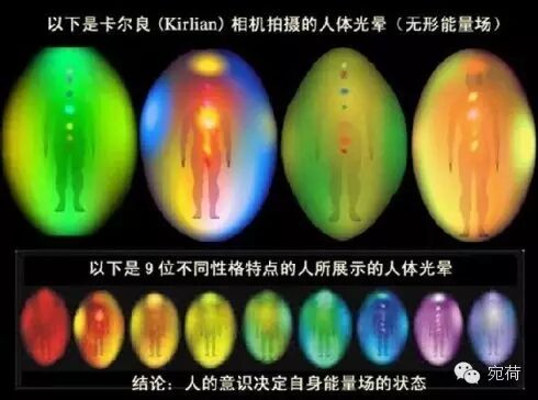 这是一张色彩能量脉轮图,从简单的角度看,我们之所以会看见各种颜色是因为每种色彩的光波长短不同,实际上,我们身体周围也有着不同颜色的光晕。