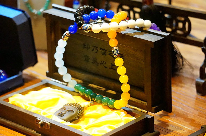 “七色能量福珠”色彩搭配玄妙考究,色彩能量具足 。七色福珠以彩虹七色为设计主线 ,彩虹七色不仅可帮助我们改善身体健康状况,还可以缓解精神压力、增加精气神,并应用阴阳平衡原理,让色彩能量自然流动,达到调整能量,平衡能量的作用。