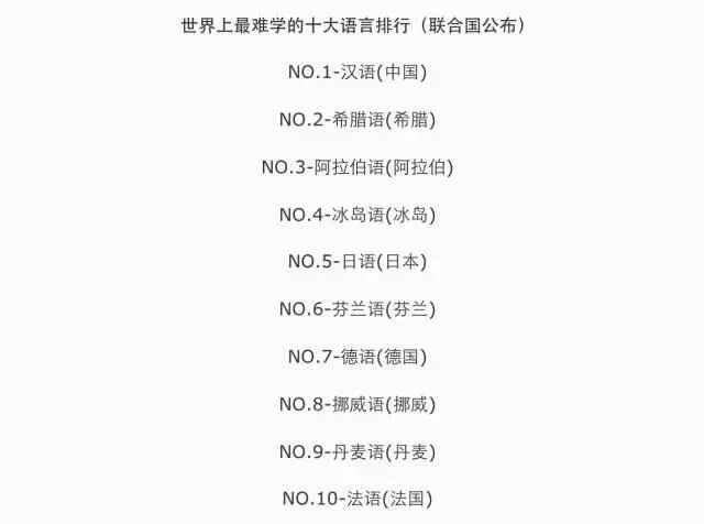 一是人民网(转发)的《联合国公布世界上最难学的十大语言》:中文高居榜首,之后是希腊语、阿拉伯语等,而英语不入前十。我Google到此文源自2013年9月11日英文版中国网的“新闻”Top 10 hardest languages to learn,原文只是说released by the United Nations Educational Scientific and Cultural Organization(联合国教科文组织),但在其他英文网络根本搜不到。2016年大象工会就质疑这是假新闻(《汉语真的是全世界最难学的语言吗》),现在看来是彻头彻尾了,说白了就是为了增强民族自信心的YY贴。然而很多“英语教育砖家”纷纷转载,暴露水平了。