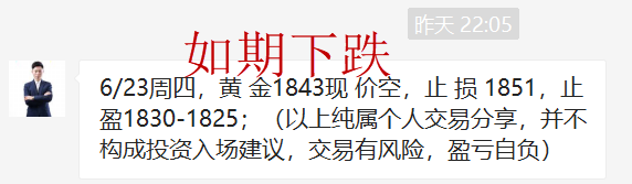 黄金震荡洗盘,最终空头略胜一筹,行情继续下探1822的支撑,昨天我们1843位置干空,最终如期下跌,今日还是继续空不变,早盘反弹依托1835的压力干空!