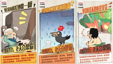 乐视#年纪轻轻百万年薪#活动推出了一组视觉创意, 这套创意海报通过手绘漫画的形式,以诙谐的画面重新诠释了“愚公移山”、“乌鸦喝水”、“钻木取火”三个耳熟能详的故事,成套的视觉冲击力感展现主题[只要够努力老天会帮你]。让看到海报的人对乐视视频端的百万年薪超级代言人活动形成更清晰的认识——参与签到就有机会获得乐视手机。