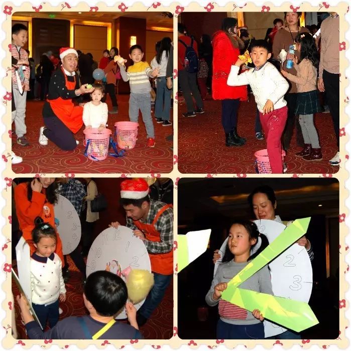 小朋友们在老师的带领下一起学做手工:果珍雪人、呆萌麋鹿、圣诞许愿球、变身圣诞帽,小朋友们拿着自己的手工作品,欢乐开怀。具有竞赛性质的亲子游戏使现场的气氛沸腾起来,家长与小朋友共同参与黄金矿工、礼物大收集、机器人赛跑、时间到了游戏。在比赛中,大家收获欢笑与友谊;在游戏里,孩子与家长增进了亲子感情。图书猜猜猜是许多家长与孩子们喜欢的皮卡传统项目,大家猜出图书的名字,拿着赢得的皮卡币,去换取各种礼物。