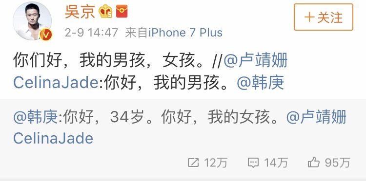 30号,韩庚卢靖姗被亲友在朋友圈曝出婚前晚宴照片,迅速霸占热搜!