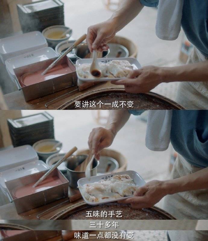 处在历史发展的洪流之中,我们这一代人经历了太多历史没有出现的变化。对人生体验来说,时间永远向前看。大到个人与国家的、个人与社会的思考,小到个人与生活方方面面的粘连,都等着我们去做选择、做改变,就如老街的传统手艺肠粉,经历了老蔡时代的传统口味,一下一下的手工打磨,又经历老蔡徒弟的技术创新,肠粉的味道更厚重浓郁了。
