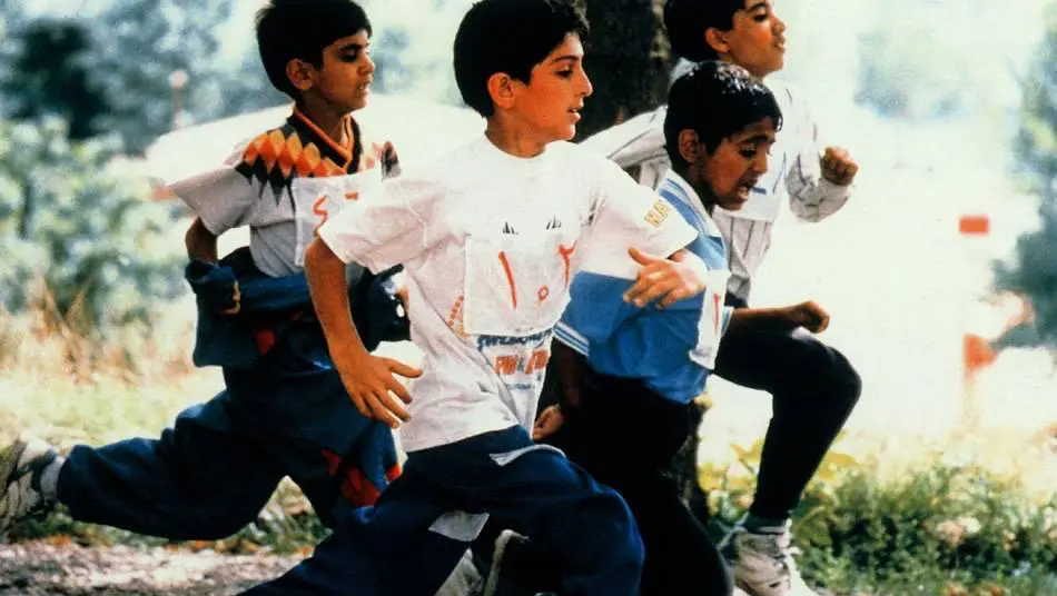 电影《小鞋子》(1997)剧照。在影视作品中,跑步往往被视为是贫穷或者“非普娃”家庭的进阶之路。