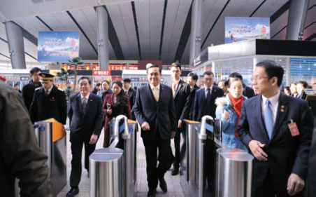 图:2014年12月23日,泰国总理巴育一行访华期间参观高铁管理中心,并从北京搭高铁。