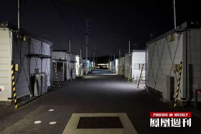 夜色中的临时安置房。核电站事故发生以后,当局为避难者兴建了很多暂住房。但摄影师纳贺说,人们住在面积局促的暂住屋里,仍旧怀念过去的老屋。2011年的这场日本东北部9.0级强震引发特大海啸后,福岛第一核电站损毁严重,大量放射性物质外泄,大批居民被疏散撤离,最初疏散范围是核电站方圆3公里,后来扩大到30公里。据估计日本当局疏散了附近至少20万名居民。日本原子能安全保安院后来把福岛核事件定性为最高级别的7级,这也被视为1986年切尔诺贝利核电站泄漏之后,人类历史上最严重的核事故。至今,福岛第一核电站废墟最邻近的区域仍然检测有高辐射。