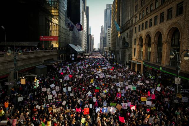由于新任美国总统特朗普此前多次发表过歧视女性的言论,在他就任的第一日,据统计有约100万人在华盛顿参加游行,而在全球范围内有约500万人参加了“姐妹游行”。这场游行由夏威夷的一位退休律师Teresa