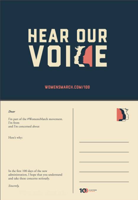“女性大游行”的官网则发布了新的活动倡议:在接下来的一百天里,每十天关注一件大家关心的事件。而第一步是鼓动参与者写明信片给自己所处地方的参议员,组织者也统一设计了寄给议员的卡片,接下来有可能继续组织类似的游行活动。