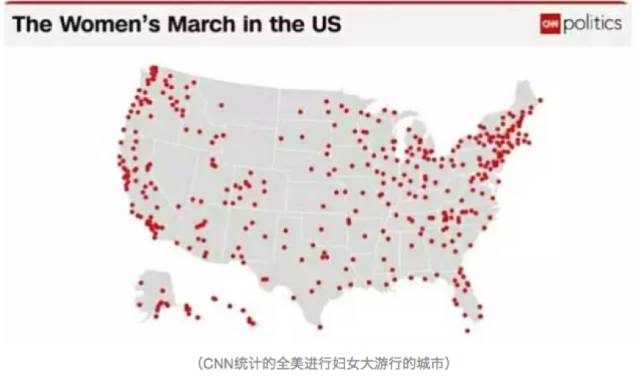 除了华盛顿,美国的许多城市甚至全球20多个城市都组织了“姐妹游行”。据组织者统计,全球范围内约有673个“姐妹游行”,而各处的游行人数都超出了预计。