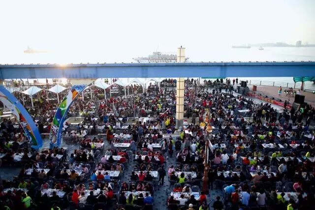 2016年3月28日,韩国仁川,4500多名中国游客在仁川一公园参加炸鸡啤酒派对。600米长的路面摆满了餐桌,桌上摆着炸鸡、啤酒。