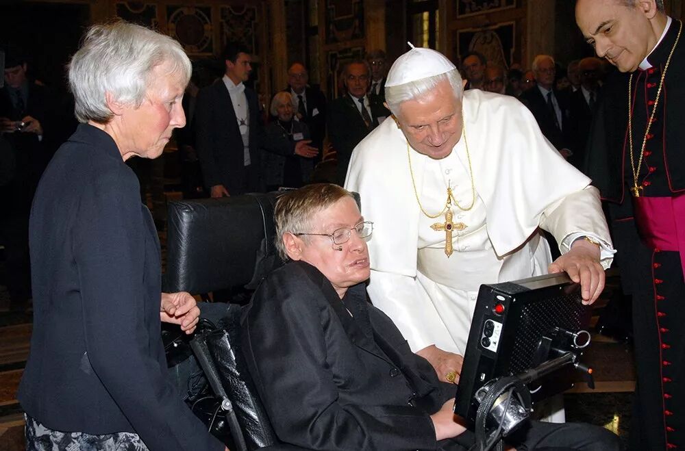 他也非常忙,要见很多人。比如见见教皇。2008年,霍金在梵蒂冈会见教皇本笃十六世。