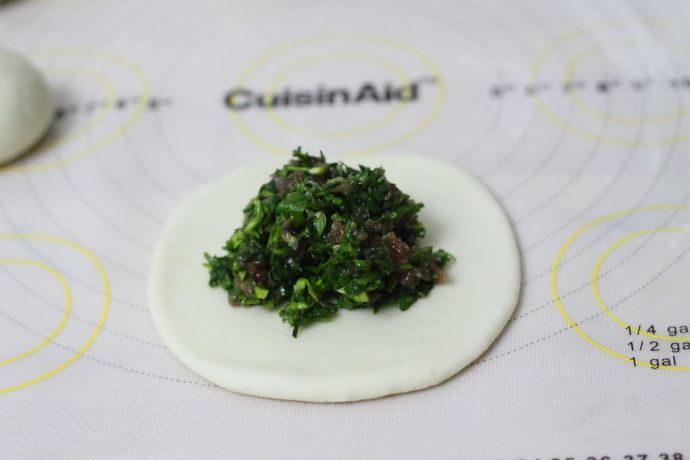 之前在我的印象中想吃这个,就必须要田边、路旁、山坡等地去采摘,所以每年春节回老家后没事就会让孩子爸陪我一起去采摘这个回来包饺子或春卷吃,没想到细心的公公就特意留了一些这个菜的种子,去年在家里菜园里种了两块地,春节回家正赶上吃的好时节。春节在家吃完回北京时又特意带了一些回北京,除用来包饺子外还留了一点做馅饼,虽然是第一次用它来做馅,味道一样鲜美。