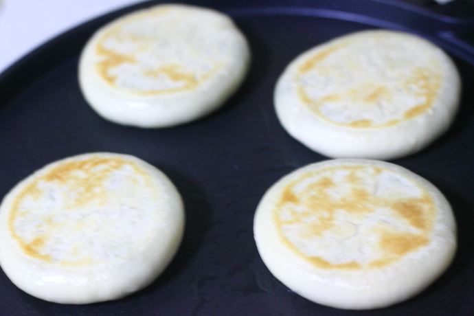 12、一面烙黄后翻面烙另一面,等两面变金黄色时出锅