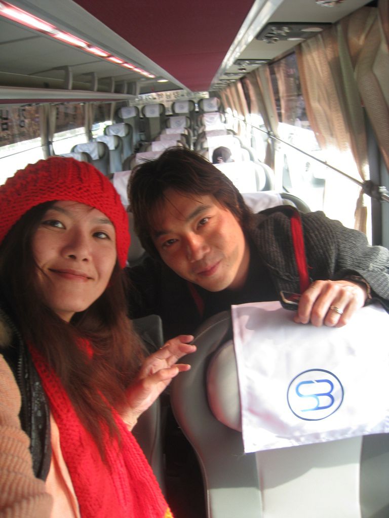 因為,YOSHI桑的行李小,所以巴士一到,他就拎了先上了車。