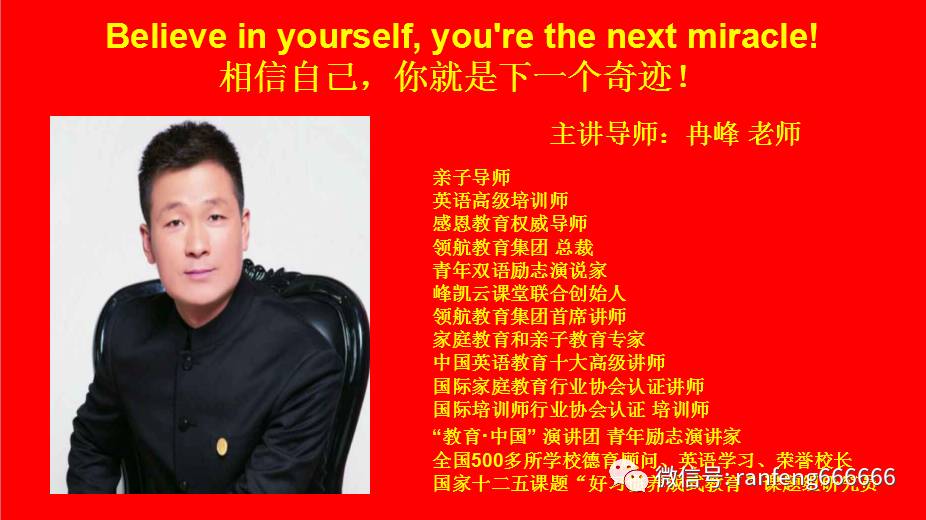 超级演说家、家庭教育、亲子教育、感恩教育权威导师、领航教育集团首席教育专家冉峰老师