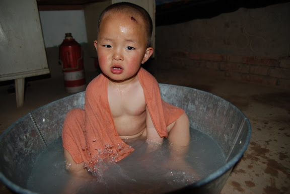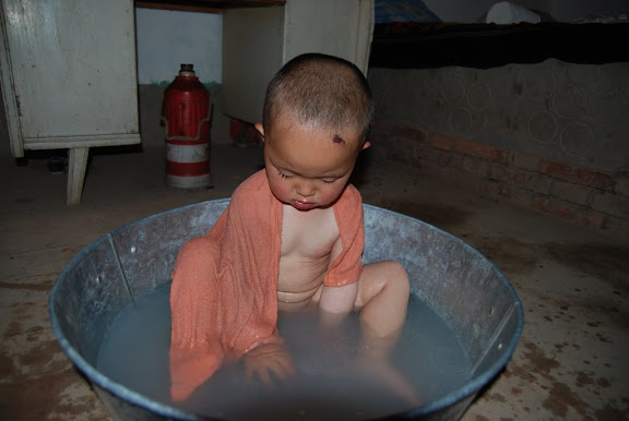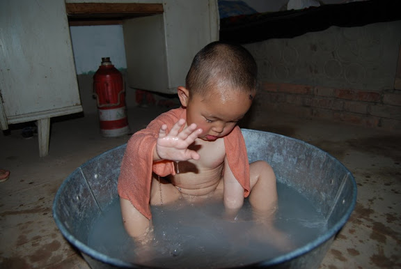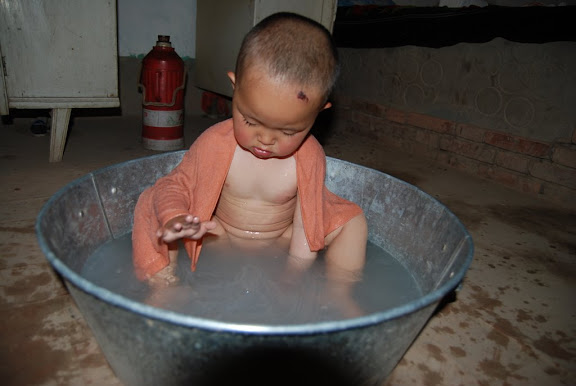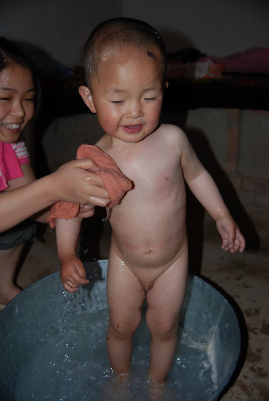 那天,小媳妇终于按捺不住,决定给小侄子洗个澡。按她的说法,“小孩子天生跟水亲,没有理由不喜欢洗澡的。”于是就有了俺镜头下记录的这个洗澡系列。