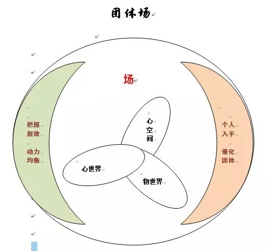 团体所在的物理环境加上成员各自的心理空间、心理世界,在互动中相互融入、相互影响,于是场形成了。