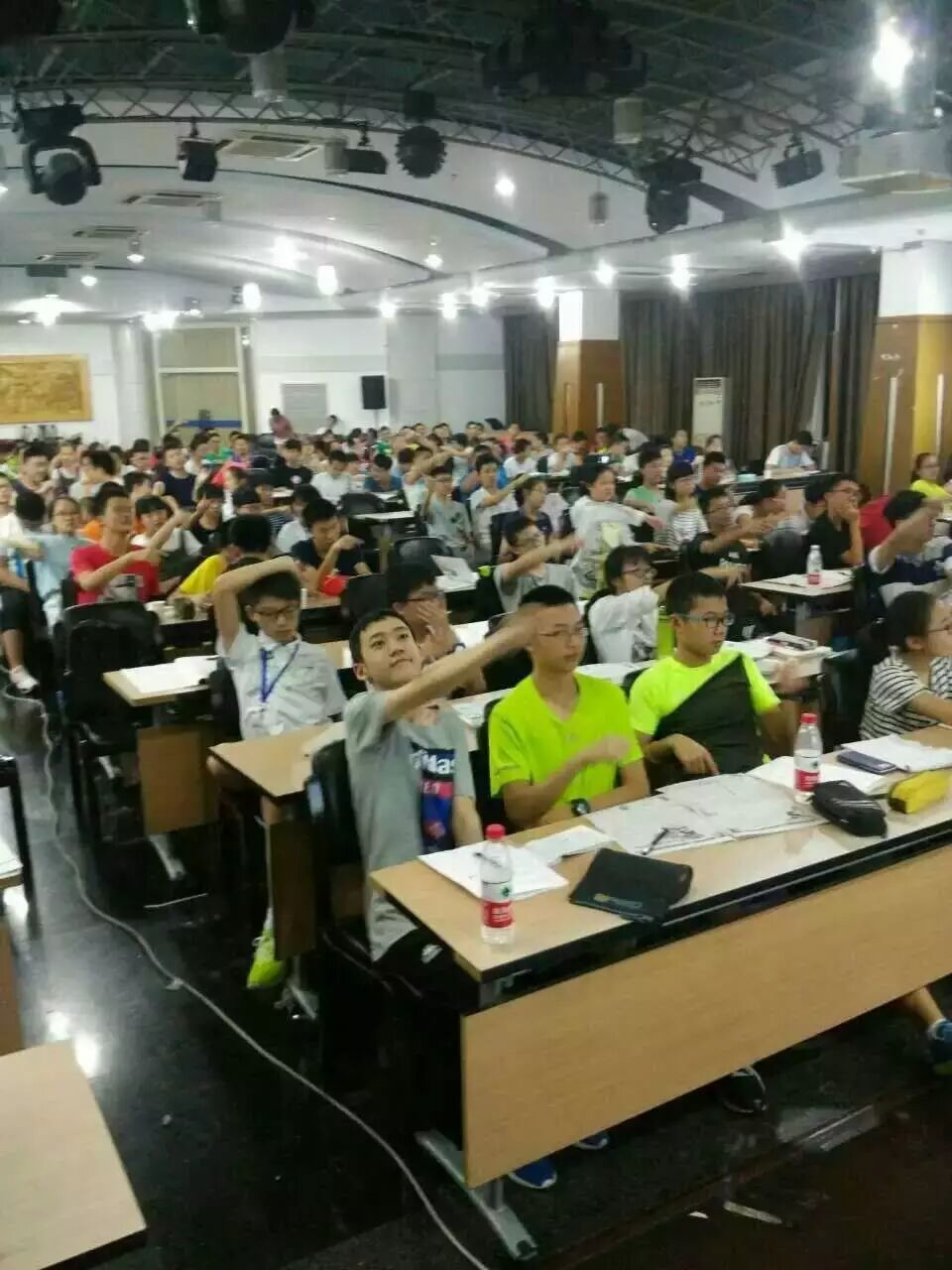 在学习的中间环节,有时候会用集体催眠,也会有大脑运动操,来平衡他们的左右脑,或者使用积极心理学技术的一些活动调解情绪状态。