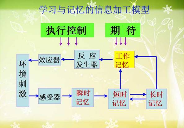 具体的操作过程,按照(下图)心理学上的学习与记忆的信息加工模型进行操作指导,使得学习过程更有效。