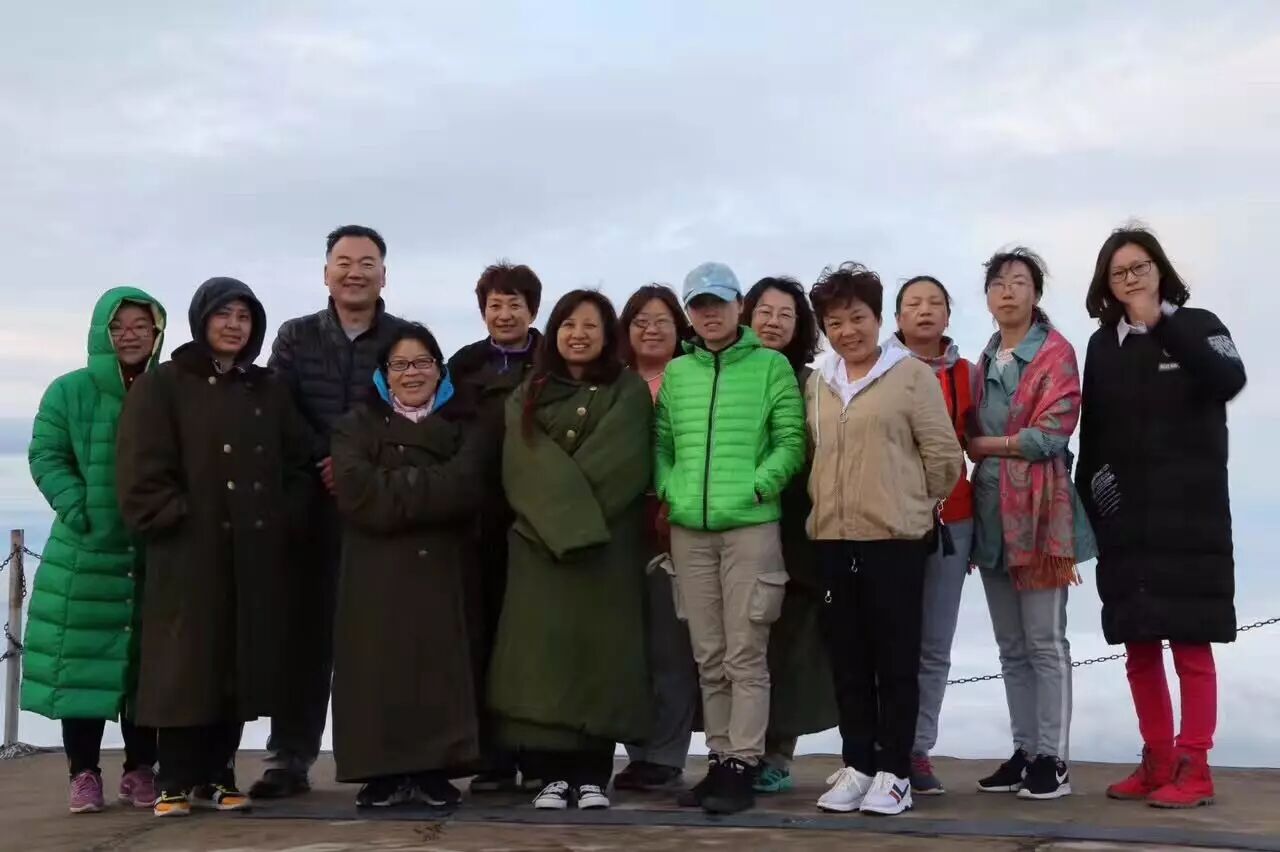 然后陆陆续续大家也都到了泰山顶上,为什么我们这么急呢?因为昨天晚上7点到8点是我们星期三时间,我们定的主题也是“心理学工作者的知识网红时代”这个主题。