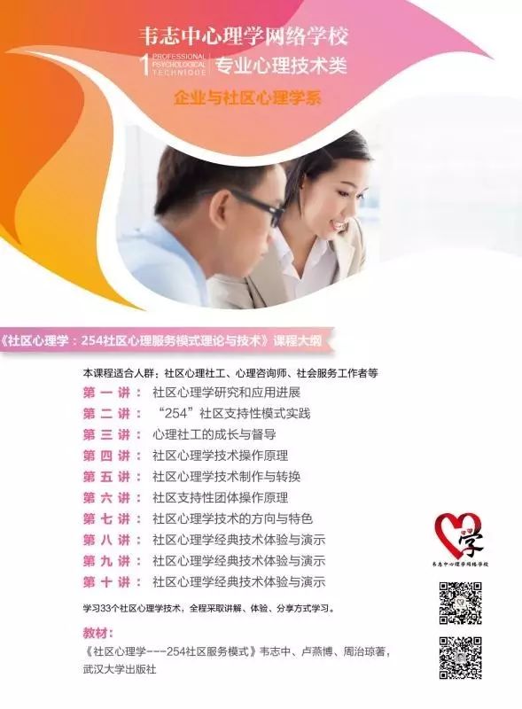 这本书之前,我们是先把心理学放在社区里面去用,经过几年的探索之后,我们形成了这本书。出版了这本书之后,现在我们又从书再回到课程上面,所以开发了这一门课程。