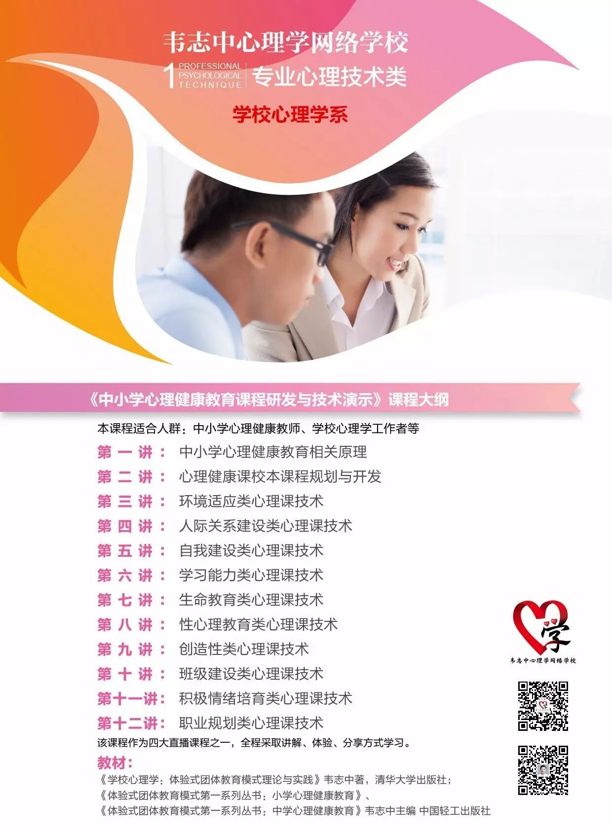 所以我们希望更多的学校心理老师来报我们韦志中心理学网络学校大众心理学专业,尤其是报学校心理学系。