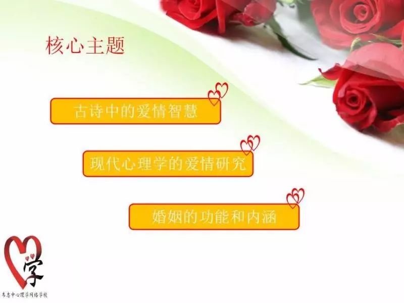 这边的心理学同学会,我们网校的同学也坐在我身边,有几十个,我们一起给大家进行直播。按照我们第一次的约定,我们有7次的讲座,今天是第二次,主题是《爱情心理学》。