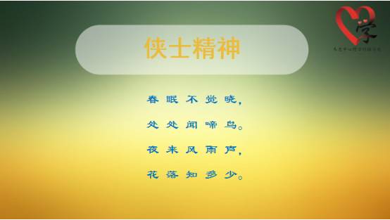 时间过得真快,最后一首诗结束今天的课题,唐代诗人孟浩然《春晓》这首诗:春眠不觉晓,处处闻啼鸟。夜来风雨声,花落知多少。做一名心理工作者,我们应该有诗人那样的情怀,我自己可以睡到自然醒,我自己的生活衣食无忧了,我今天也是这样,我自己讲讲课,随便都可以的,但是“处处闻啼鸟”我享受生活的快乐,听到鸟叫的声音。可是,在我们这个世界,还有“夜来风雨声”,还有很多人他们生活在不幸福当中,还有很多人人际关系不好,还有很多人不知道自己是谁,还有很多人不自信,还有很多人需要给一些爱和支持,所以我们要做很多很多的心理的关怀,我们要让更多的心理学工作者慢慢成为帮助他人,有能力帮助他人,至少不会害他人的人。所以 “夜来风雨声,花落知多少”这是诗人的一种人文情怀,他一定要去帮助这个社会。