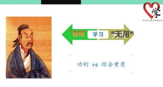 接下来我们继续看,很多人会有一个功利心理。我们把庄子的一个无用和有用拿出来看,有很多人学心理学就走进了一个误区,就是有用和无用。他认为无用的都不学,他只学有用的。结果无用就是大用啊!比如说我在今天和一个著名的心理学者聊天和谈心,他也不给我讲技术,但是我在这个当中我就感受到了他的人格。不识货的人就觉得无用,你怎么不教我两招呢?你韦志中今天来到合肥不教我两招,你还在这里东扯西扯。他不去学这个老师是干什么的。