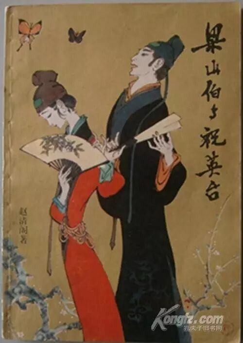 该书1954年7月由四联出版社初版,32开,平装,印数3000册。封面色彩兰色,背景画隐约可见梁山伯墓地祝父祝公远、书童四九、丫环银心惊看梁祝双双化蝶飞出坟墓的瞬间,此时不知祝父作何感想?!(背景画同时也是书中化蝶一章的插图)书名置封面上方中墨蓝大字横排,作者名置书名下墨蓝小字横排。“四联出版社出版”置封面下方中墨蓝小字横排。书内文字为竖排,卷首有作者自序,书内有插图十幅,每章一幅。内容共十章:第一章求学,第二章结拜,第三章相爱,第四章送行,第五章说媒,第六章访友,第七章殉情,第八章哭灵,第九章逼婚,第十章化蝶。