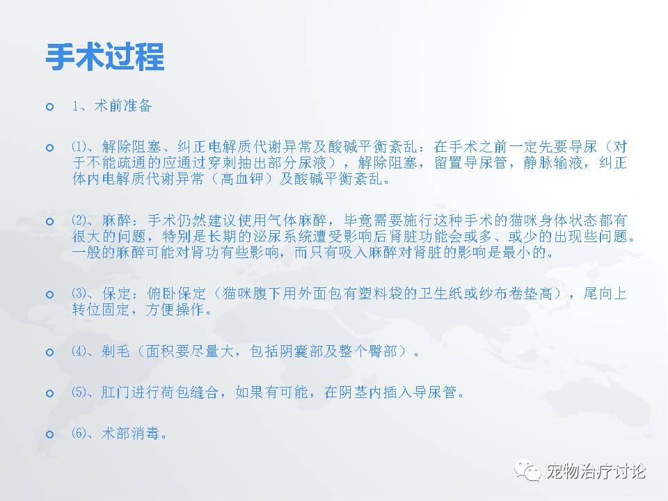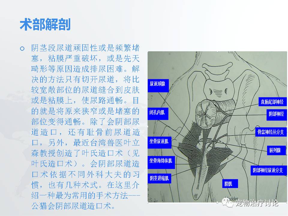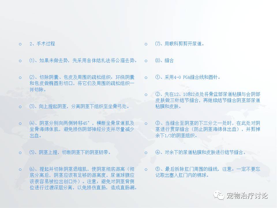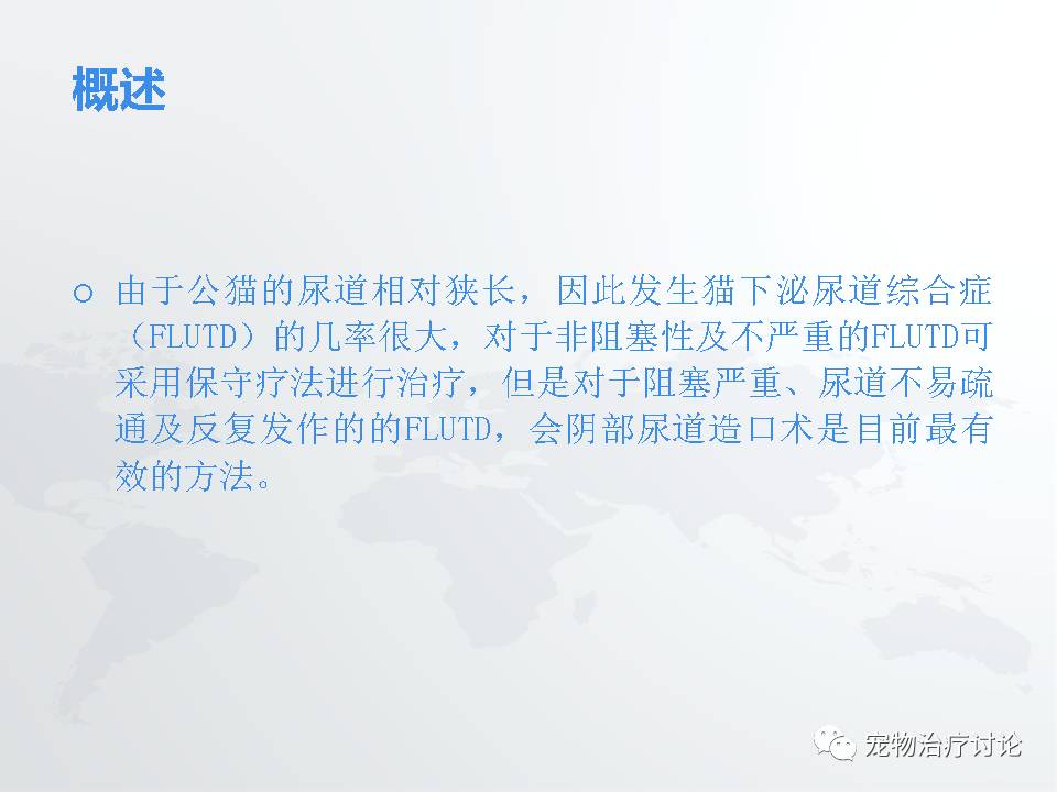 对于通过插导尿管不能疏通及治愈的FLUTD、反复发作的FLUTD,尿道早口术是最终的解决办法。(具体手术方法,见外科手术)