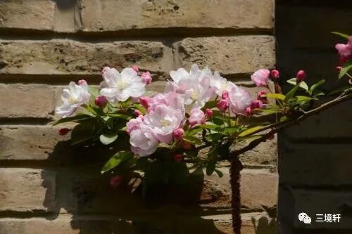 我记得,初春,海棠是继梅花、杏花、迎春花之后早先开放的花卉之一。那时候,它的枝桠上,以及我家楼房后撇的瓦垅上,尽是一簇簇樱花般粉里透红的花团。一旦暖风吹来,其花瓣飘然而下,满地粉红粉红,引来千蜂飞逐、万蝶起舞、满庭清香。这时,母亲总喜欢在劳作之余捡起些许花瓣,用唇相吻,以鼻相闻,并提醒我要珍惜这经秋历冬才迎来的良辰美景,切不要摇晃它的枝干,不能践踏它的缤纷落英,更不能去折枝损梢,使海棠的花香花色受到伤害。