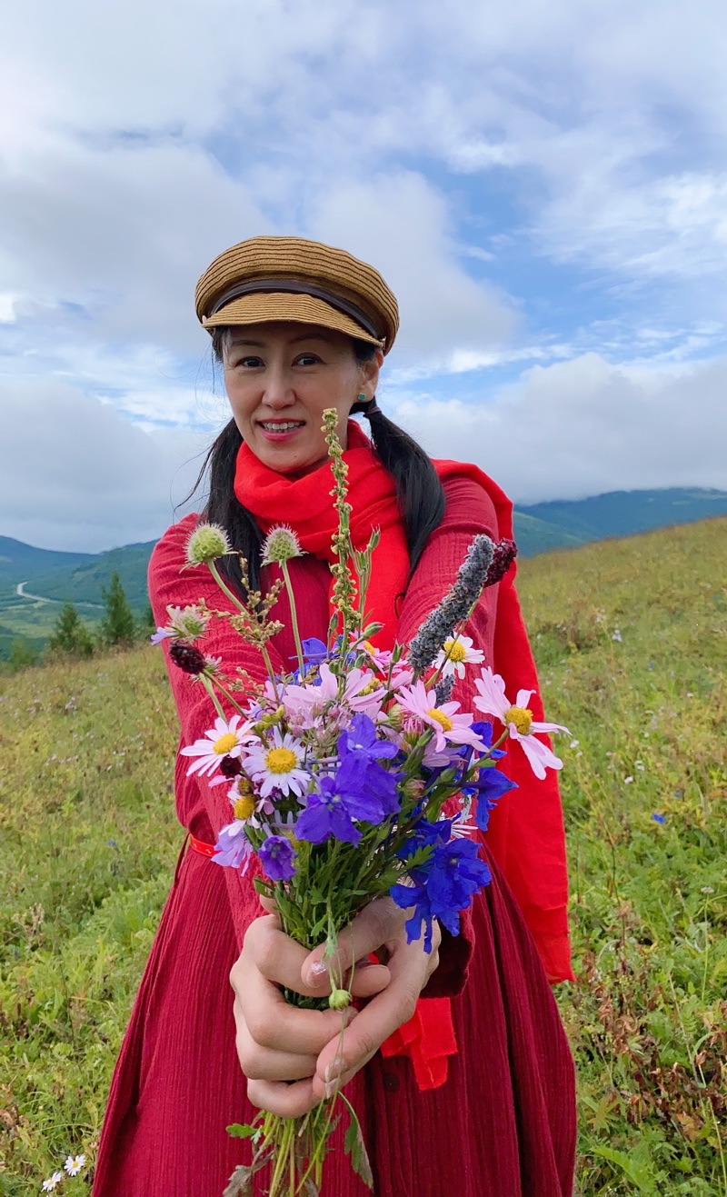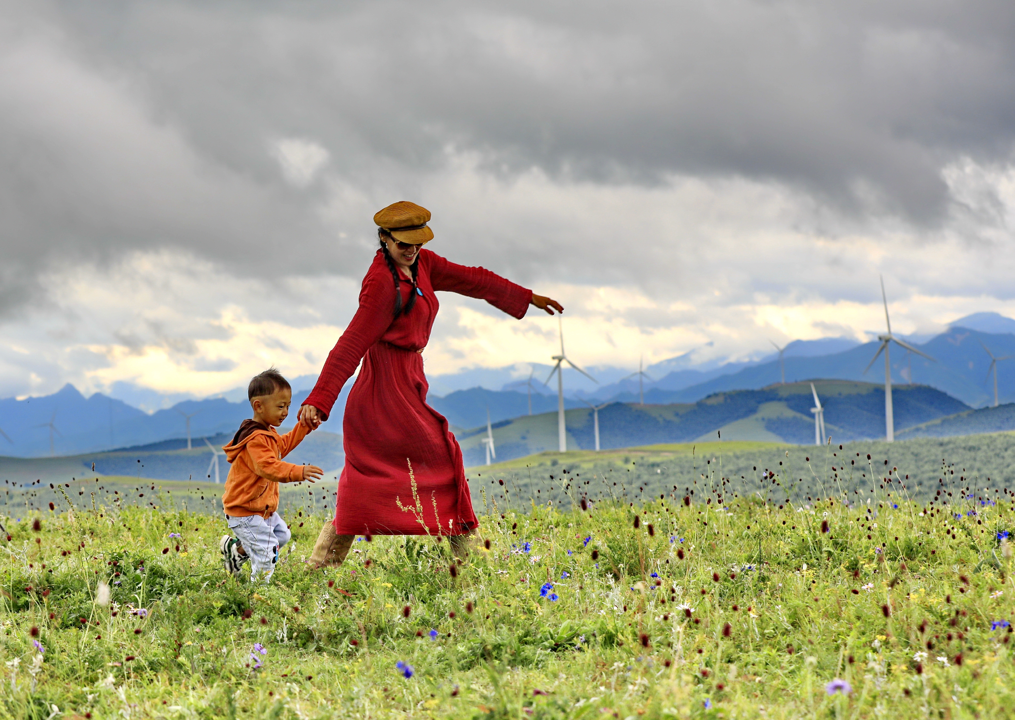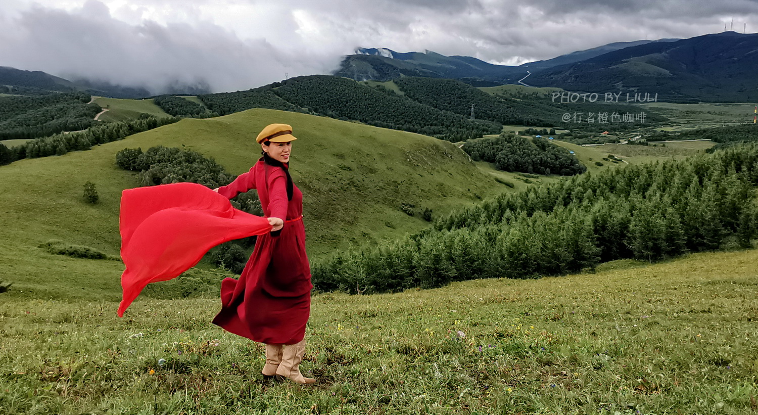 3、在草原上拍照,建议穿色彩艳丽的服饰更出彩。