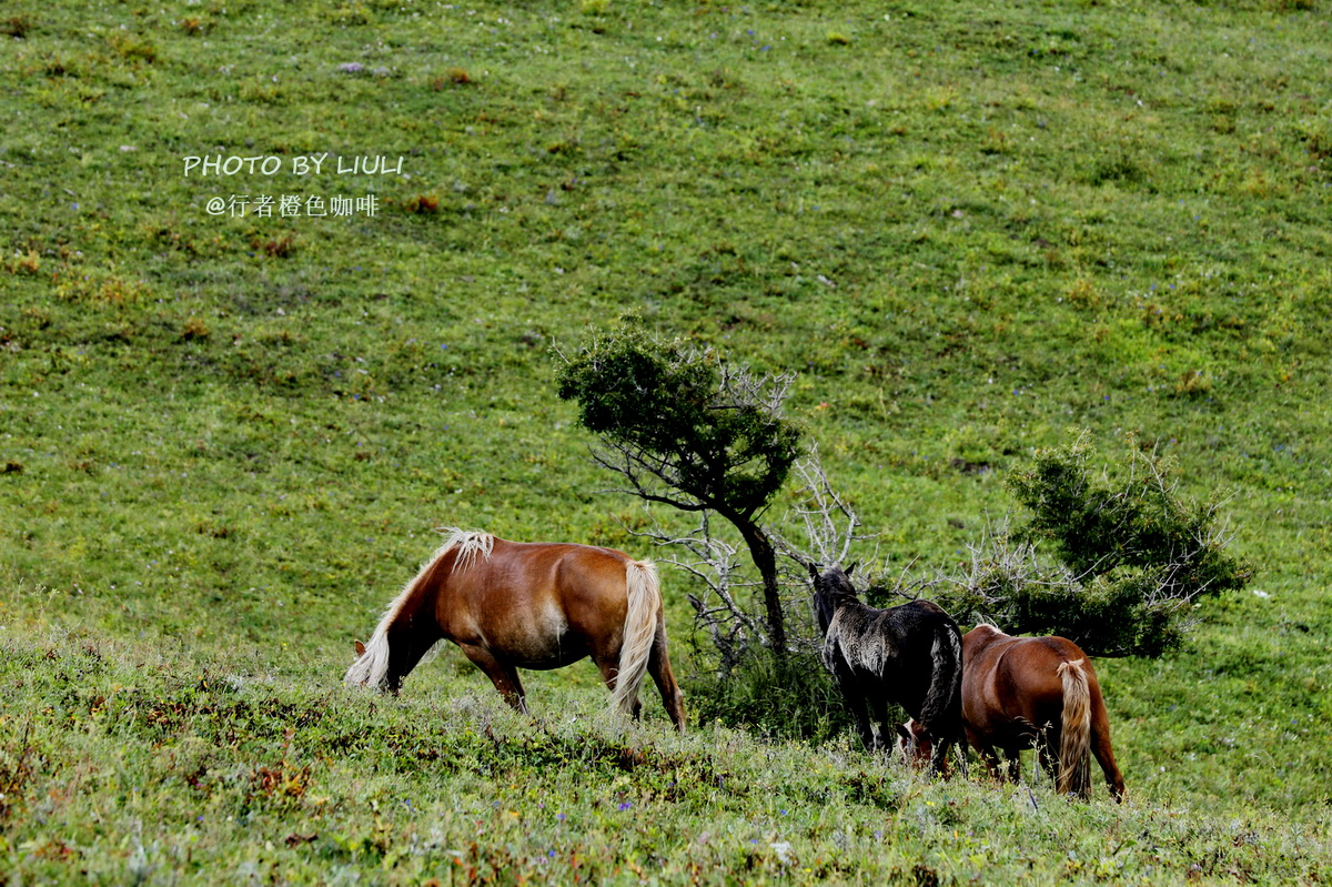 穿过林海,半山上是层次分明的稀树草原,成群的骏马悠闲的吃着青草。沿着天路穿行在群山中,一路变换不同的景观,每一处木栈道观景台,都是一处绝美的画卷。