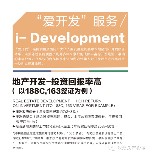 龍澳投资作为澳大利亚资深地产开发商,拥有丰富的别墅、联排别墅、公寓等各种房产的成功开发经验。龍澳投资拥有集投资规划、项目管理、地产开发为一体的房地产投资开发全过程运作能力和系统,携手投资者创建最有价值的澳洲房产投资专案平台。