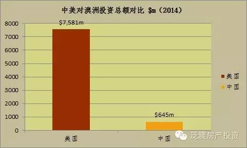 Australian Bureau ofStatistics(ABS)(澳大利亚国家统计局)在2015年5月15日给出的两份关于各个国家在澳洲的投资数据,细心对比之下就会发现,美国在澳洲各个产业的投资远超中国。ABS的数据指出美国在澳投资占澳洲所有海外投资总额的百分之二十七左右,约合7581亿澳元,而中国只有645亿澳元。美国在澳洲投资总额在2014年远超中国十倍不止!除此之外,ABS的数据更加表明以房地产业为主要组成部分的海外直接投资在2014年中国只120亿澳元,而美国却投入了高达1634亿澳元。这些实打实的数据告诉我们,美国在澳洲房地产行业的投资额远远中国,而大家现在天天听到的报道是类似于‘中国把澳洲给买了!’这种不实的消息。