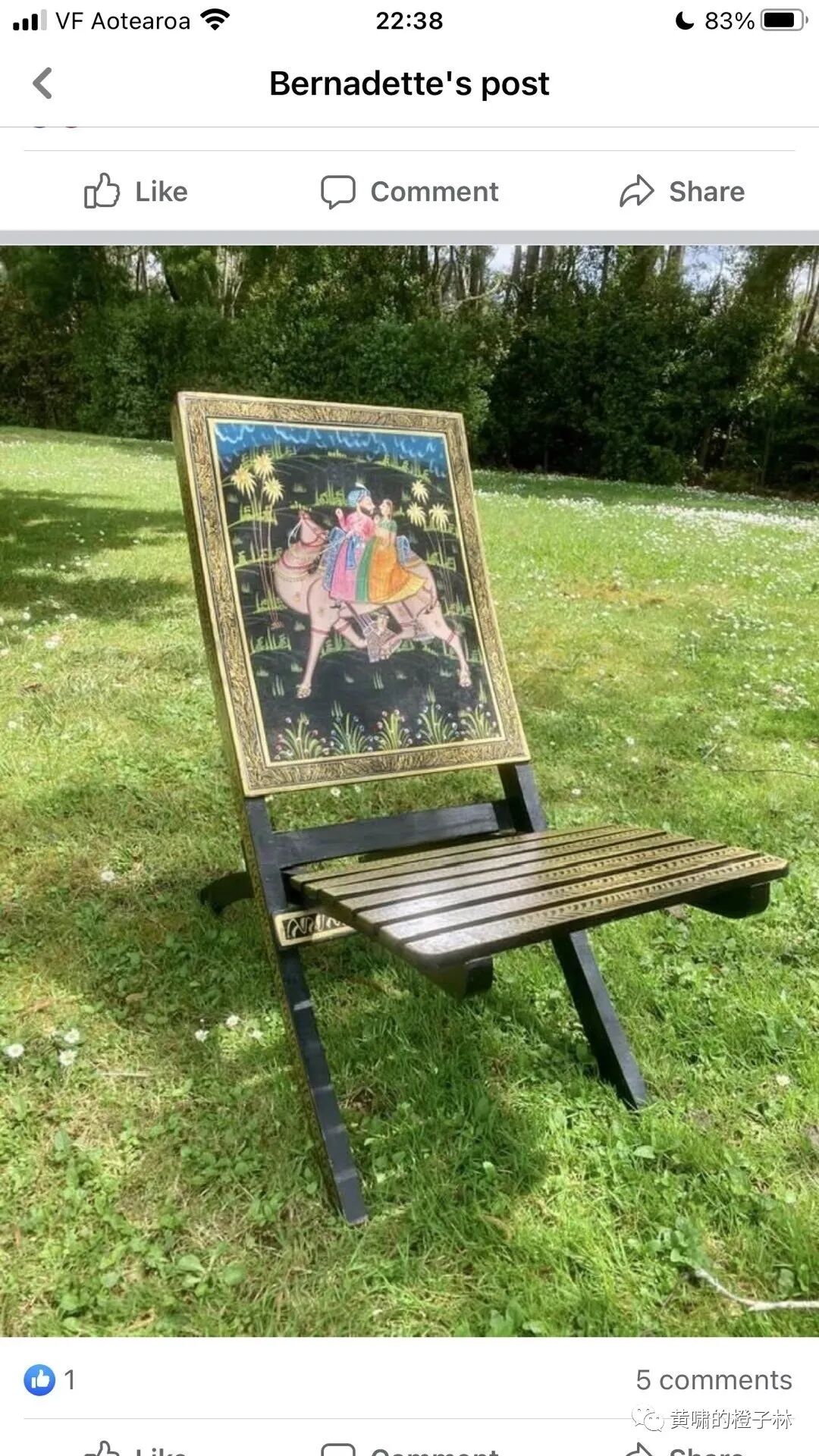 又在网上看中一对更漂亮的椅子,深色沉木椅背镂空设计,蓝色的缎面的椅面,镂空和敦实,柔软和凿实,偏偏和谐。来回开了一个半小时跑到快到机场了的一个kiwi村去取。卖家老太太说,这椅子起码比她老,她小时候这对椅子就在祖母家,祖母后来给了她。回来给椅子上了点椰子油,配原木饭桌很绝。