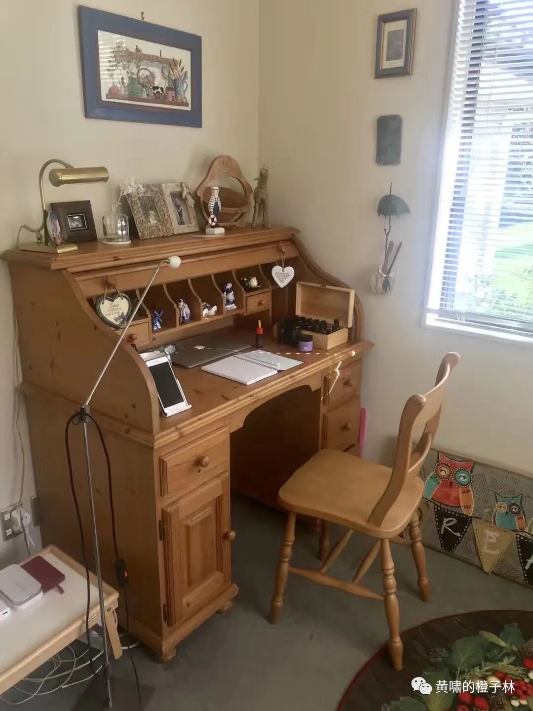 淘的最多的东西是椅子,先是在二手店看上高高地摆在桌子上的一对古董椅子,旧旧的,有划痕,椅背是九条细细圆木条。这是这栋空空荡荡房子的第一对家私,进进出出搞卫生和添置家什,累了总要坐一下,它俩为筑巢初期的秩序建立立下汗马功劳。后来这对椅子一张做了书桌椅,一张做了卧室梳妆台椅。
