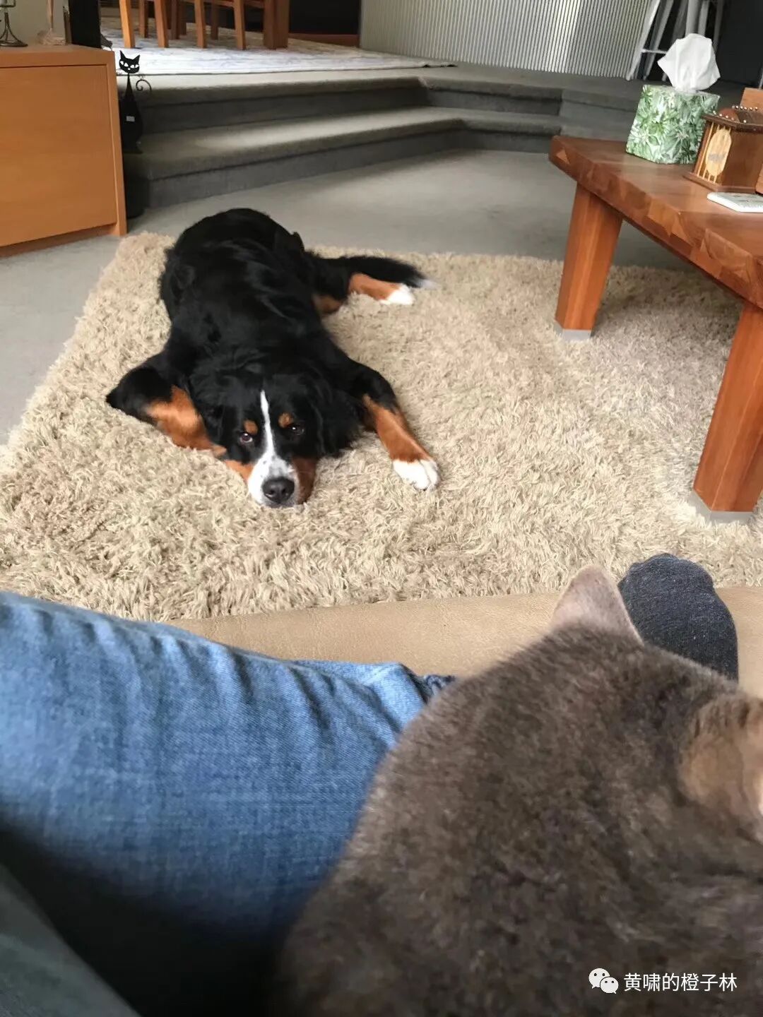 Tara这个大个子小胆子的狗狗因为先天性神经痛的毛病,一直在吃一种叫prednisone的药,药对免疫力有伤害,动辄拉肚子,所以不能住狗狗旅馆,我们出门都要请专门住家管狗狗的Robyn到家里来专职照管。小时候四肢剧烈疼痛,查不到病因,差点挂了的黑暗记忆,对Tara有很大伤害,所以这家伙日常表现有点神里神经,怕水怕山怕湖怕海怕陌生环境怕变化怕狗怕猫,江湖塔小胆一枚。一点点异常动静都能惊到它,转头查看的动作非常频繁,终日慌里慌张,呈猴相,但是跟人无限亲,无限信任,早晨喜欢站在床边,把大脑袋往我腿上、胳膊或者肢体任意一部分上一搁,意思是起不起来你看着办,狗等半天了,实在我见犹怜。该名35公斤体重的大型犬,老当自己小puppy,来不来狗躯一震坐上人大腿,或者一歪屁股,跟我们并排坐在沙发上,腿拄在下面,什么叫人模狗样,了解一下。Tara因为跟我们厮混长大,又被过分关注和照顾,自我认知严重含糊,它认为自己跟人类的可能性,远远大于对犬只的认同。