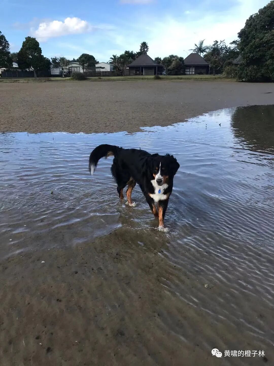没去Thames比预计到Tairua早一个小时,还不能入住,就在镇上喝杯咖啡逛逛画廊,带着Tara玩玩水,镇上的水面都是大海的接驳区域,所以比大海平静,看着跟湖似的,大人孩子都在水边玩,带着怕水的Tara在此练胆儿不错,看在我手上的一袋子牛肉干不停供应的面子上,小狗子颤颤巍巍下了水,弄得弄着就玩嗨了,狗生从此走上了爱水之路,但有浪还是不行。